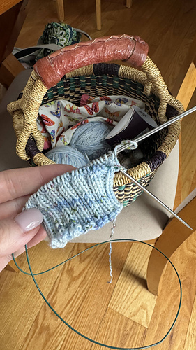 • Picked back up old WIP- started October 2024. Nearly to heel of sock 1